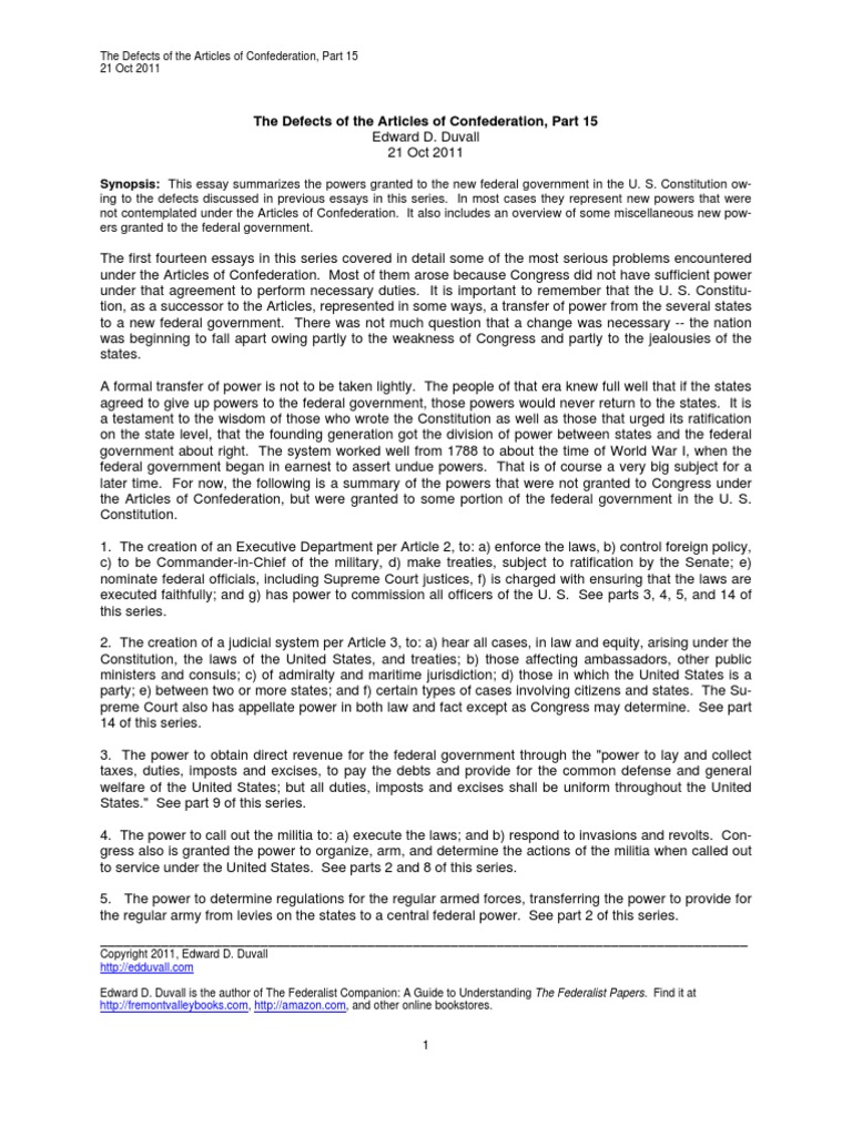 to maintain their privileges while giving enough rights to manipulate the people for political support. Since it was so weak, the Founding Fathers realized that a change had to be made to create a great market for commerce and they did so. It does not reflect the quality of papers completed by our expert essay writers.
